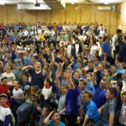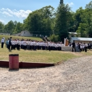 Although campers seemed to think they “knew it the whole time”, the excitement and surprise is felt in the air. Everyone was lined up in white shirts anticipating a special visitor to camp, when they were greeted by BOGWAR! Campers excitedly headed to the shul for the division of teams and presentation of generals.